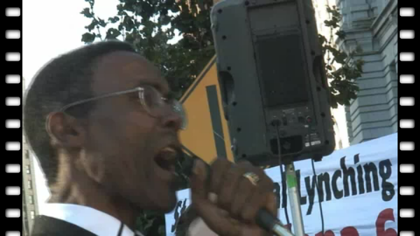 Henry Clark, Gloria La Riva, and Davey D also spoke in San Francisco. Three-minute QT movie. 50MB.