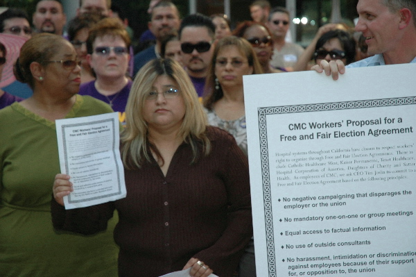 The Fresno Fair Elections Commission is a local coalition of elected, community, medical, and religious leaders who have stepped forward to establish a free and fair election at CMC. They invited both workers and CMC management to the October 17, 2007 public hearing. Over 200 CMC workers and community members attended the public hearing at the College Community Congregational Church, but the management of CMC refused to participate.