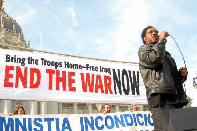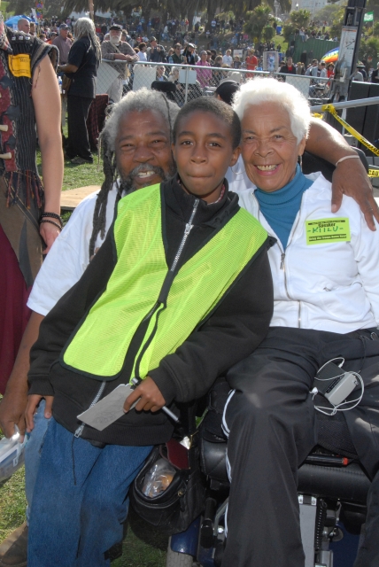 Sacred Drum ceremony at Delores Park. San Francisco, CA. after the march from The Civil Center to Delores Park.