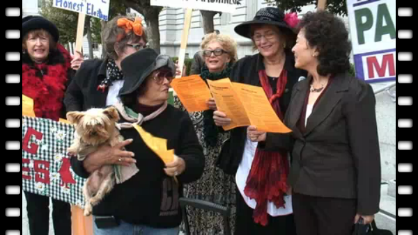 Wilma Pang and the Raging Grannies unite forces. Four-minute QT movie. 55MB.