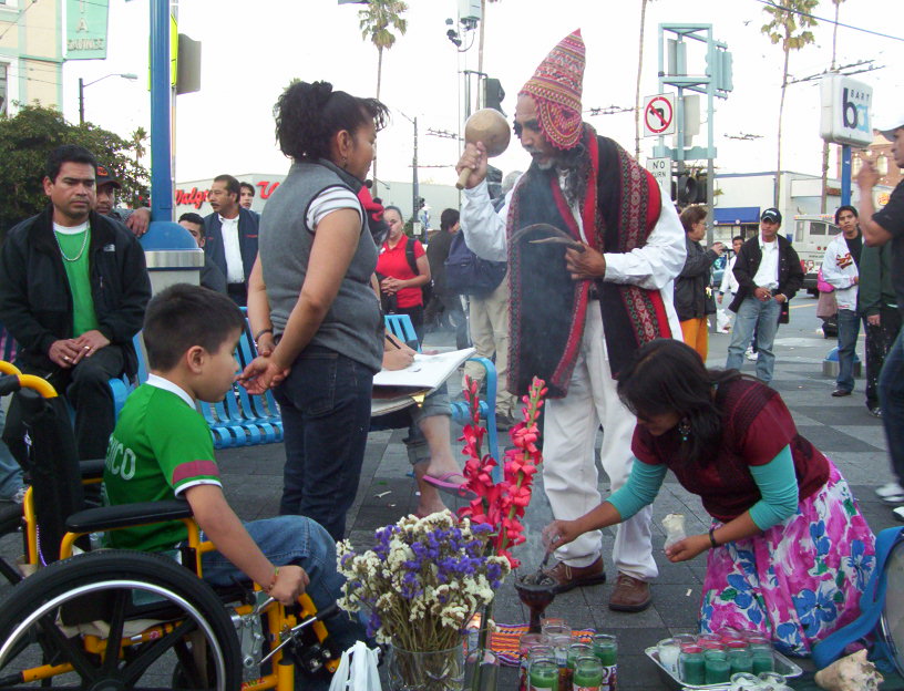 One of those killed was our friend, New York Indymedia videographer Brad Will. We remembered him and 25 others with our alters. First a small alter just for Brad was set up outside the Mexican Consulate at 1:00. The next alter was at 16th and Mission Bart Plaza, was much larger and was for all of the people killed in Oaxaca in the last two years as well as homeless SF deaths and a few family members. There were other alters and a program with different dances, peotry and speakers. We read Brad's last e-mail ( http://www.zmag.org/content/showarticle.cfm?ItemID=11293 ) where he wrote about a man named Alejando being killed, and we spoke about the situation in Oaxaca and injustice. At 7:00 there was a procession through the Mission that ended at Garfield Park. We set up our alter once more and showed videos from Oaxaca.