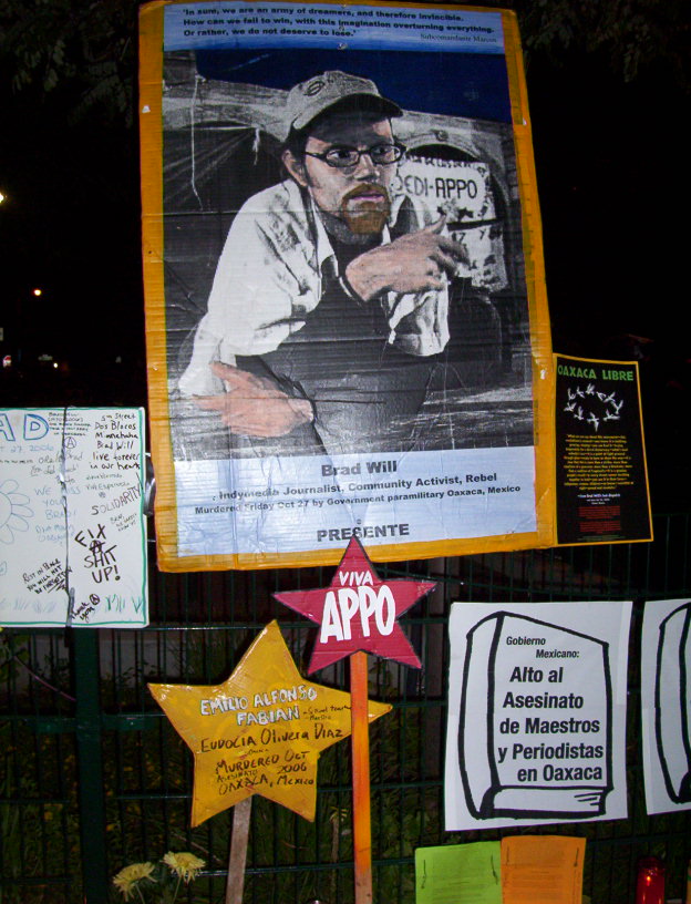 Alter for Brad Will, killed in Oaxaca, one year and six days ago in front of the Mexican Consulate.