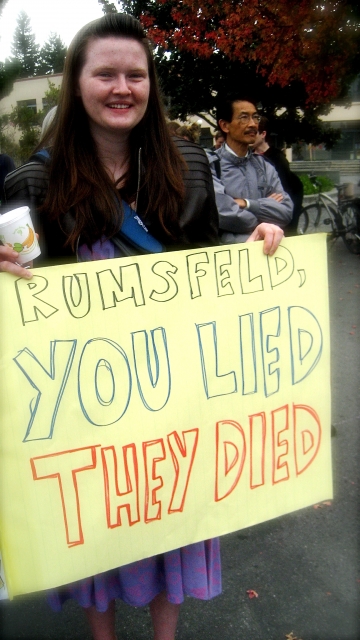 Students & Supporters Rallied Against Rumsfeld appointment to Hoover Institution as a "Distinguished Fellow"