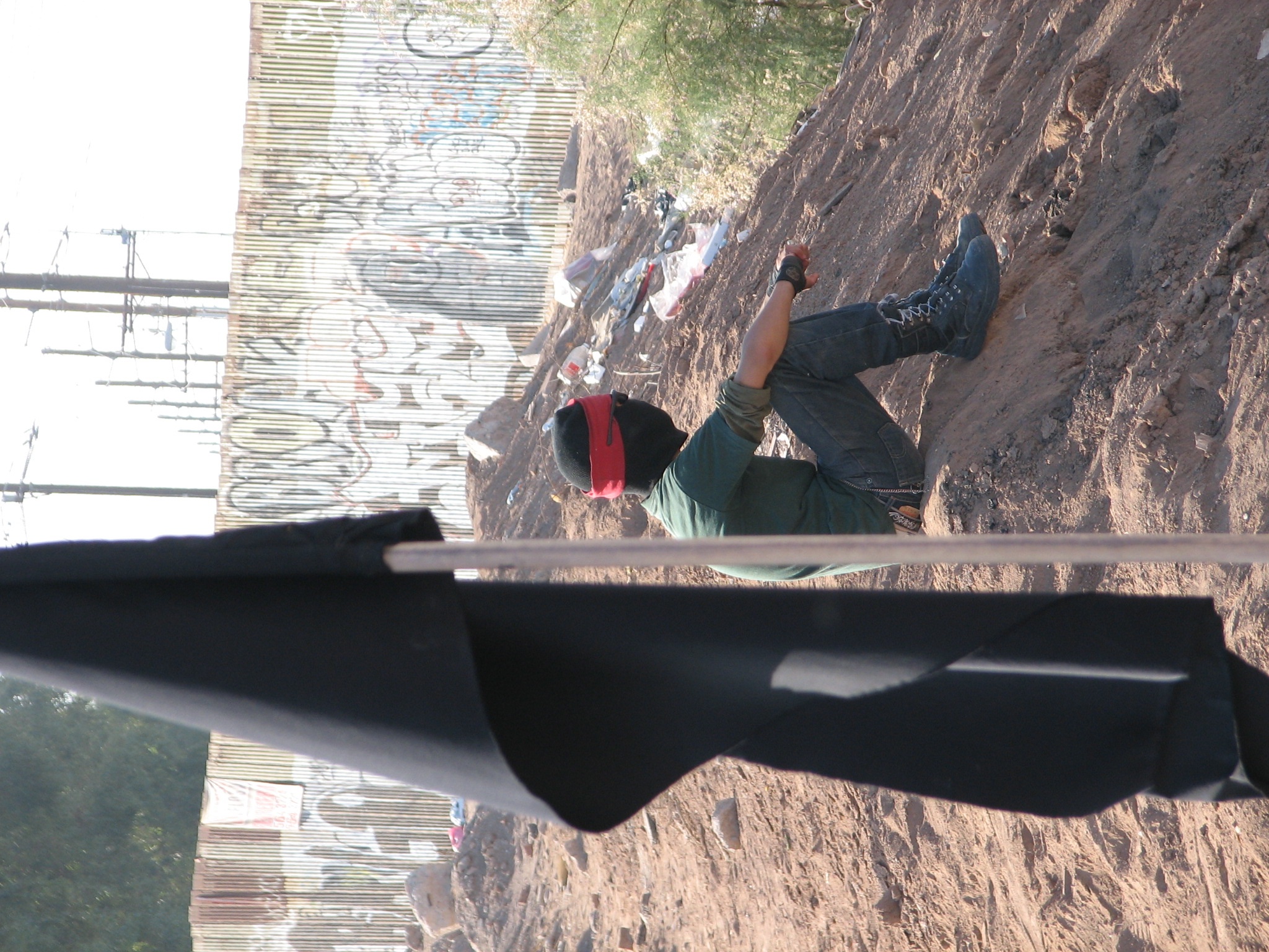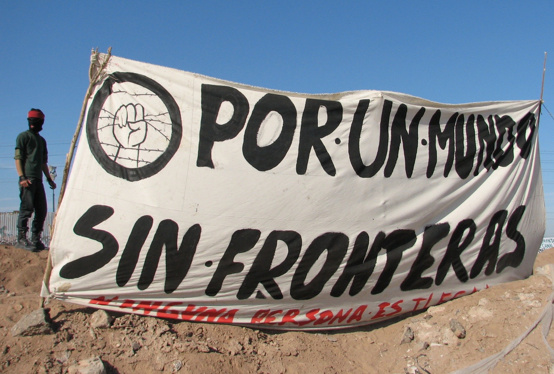 November 7th around 3:00 PM. While arriving at the Calexico/Mexicali border it was a bit difficult to find the camp. There was a growing sense of unease as it was unclear how the events of the day would turn out. Our purpose was to protest the border and unify with activists in Mexico and around the world in creating a world free from the restrictions of capitalism and militarized barriers.