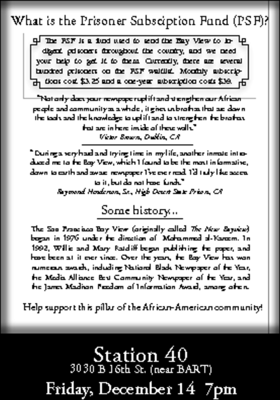 SF Bay View Newspaper Event for the "Prisoners Subscription Fund"