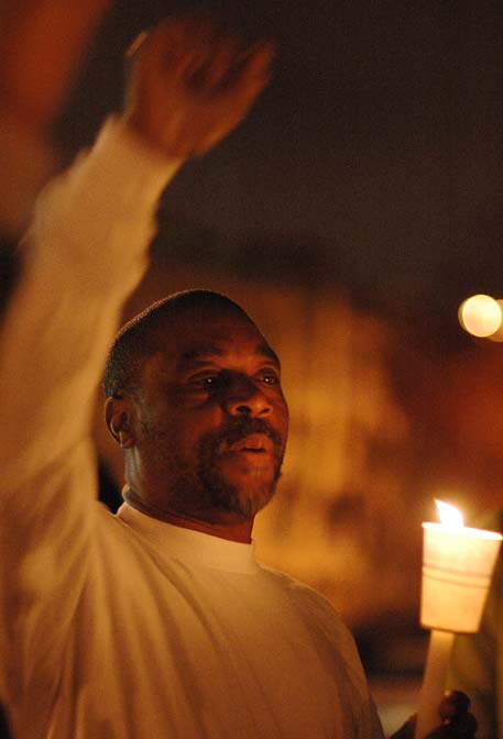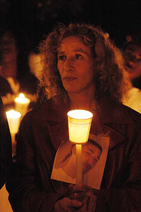 A strong united gathering of nearly 100 people held a candle light vigil Saturday night in front of a new mural designed and painted by local artist Paul Barron and Gary King Sr. at the spot where his son Gary King Jr. was brutally killed by Oakland Police Officer Patrick Gonzalez on September 20. Family and friends had turned the spot of the murder into a shrine with candles, and messages of love and anger that were repeatedly torn down by the City of Oakland. It was only after family and friends launched a struggle that the city approved the permanent mural to be created.