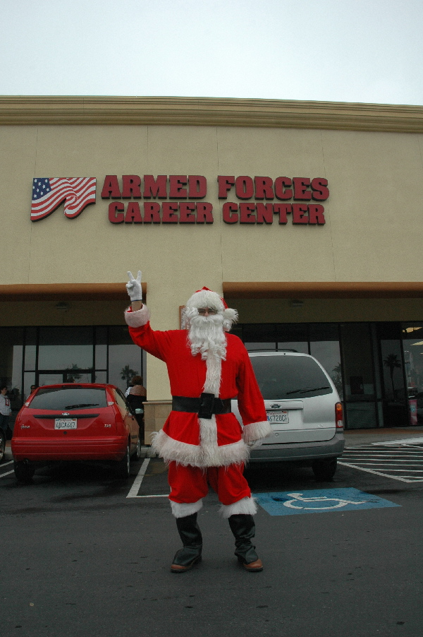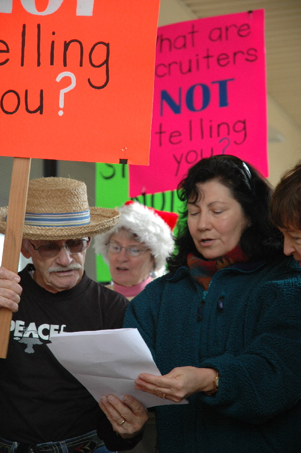 The following photos and short article are from a counter recruiting demonstration that took place in Fresno on December 19, 2007.
