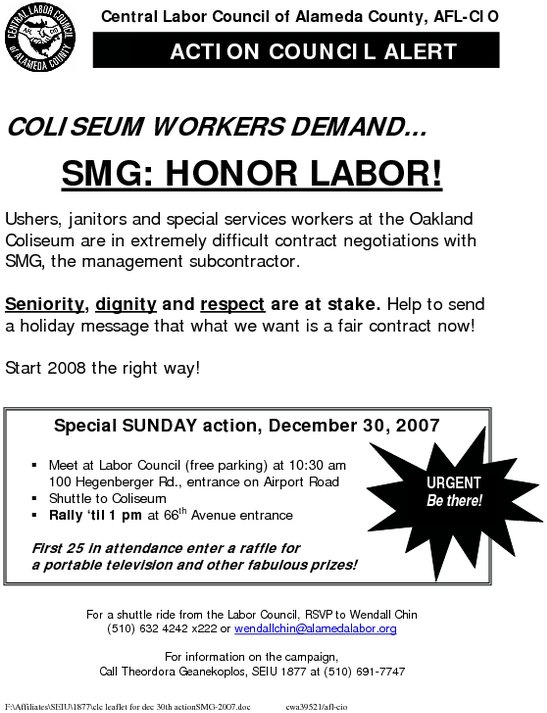 Join Coliseum Workers in Demanding that SMG Honor Labor!