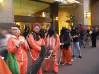 Street theater included three hooded prisoners in jump suits and the protest focused on the U.S. Government’s use of Guantanamo Bay in Cuba as a center for torture.