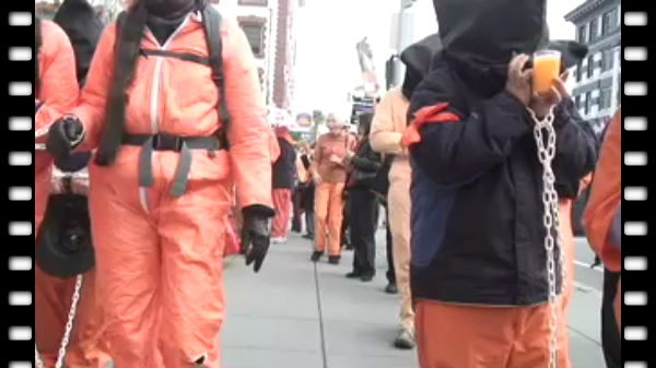 Anti-torture activists demonstrate and stop traffic in San Francisco on 01.11.08, to demand an end to U.S. torture and closure of the illegal detention center at Guantanamo Bay.