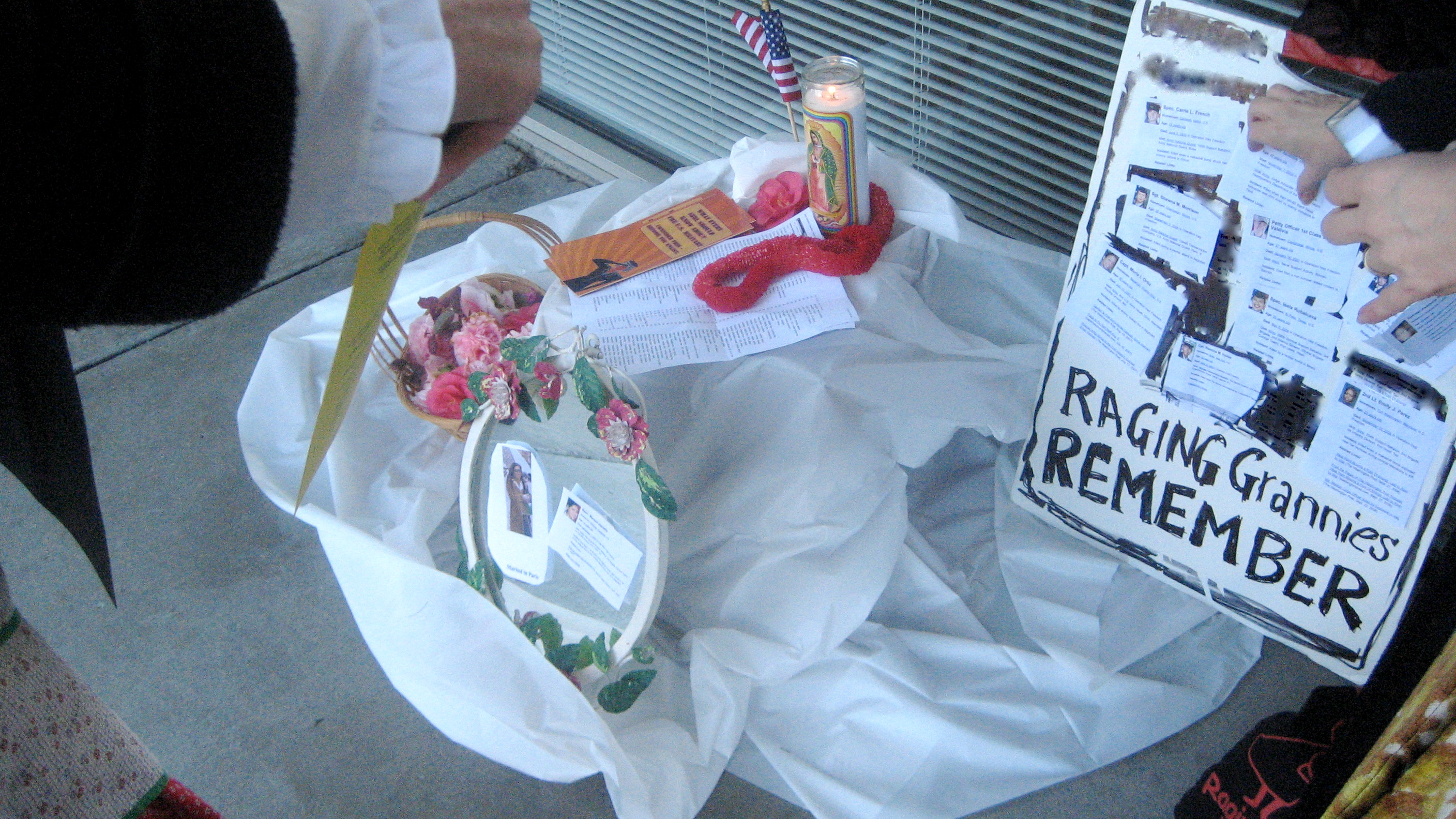 Members of the Raging Grannies Action League held a memorial service and left a shrine