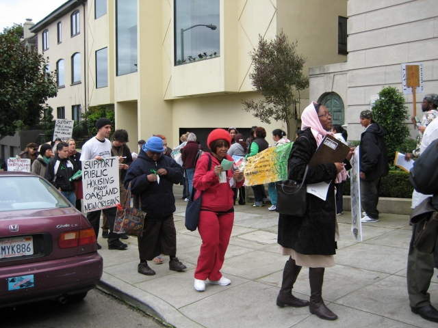 Demonstrators called on Feinstein to hold HUD accountable and provide federal protection for Katrina Survivors' Right to Return by supporting the demands of the New Orleans-based Coalition to Stop the Demolition: