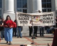 On February 11, 2008, more than two hundred participants of the Longest Walk 2 embarked on a five-month journey on foot from San Francisco. They plan on arriving arriving in Washington, D.C. on July 11, 2008. Native American tribal leaders, religious groups, environmentalists, teachers, students, and people from throughout the world are joining the walk with its "peaceful and spiritual call to action to protect Mother Earth and defend human rights."