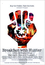 Long-time close friend and associate of Hunter, Wayne Ewing (director of numerous PBS docs for Bill Moyers) was allowed to film Hunter over a number of years. "Breakfast With Hunter" focuses primarily on the years leading up to and through the filming of "Fear and Loathing in Las Vegas," as well as documenting the trumped up DUI charge against Thompson in 1995. Free of narration, Wayne's camera captured Hunter like no one else has, including footage of the good doctor causing chaos in the Rolling Stone offices, Hunter and Johnny Depp shooting heavy weaponry, and the infamous ugly script meeting with Alex Cox and Todd Davies where discussion quickly turned uncomfortably dangerous.
