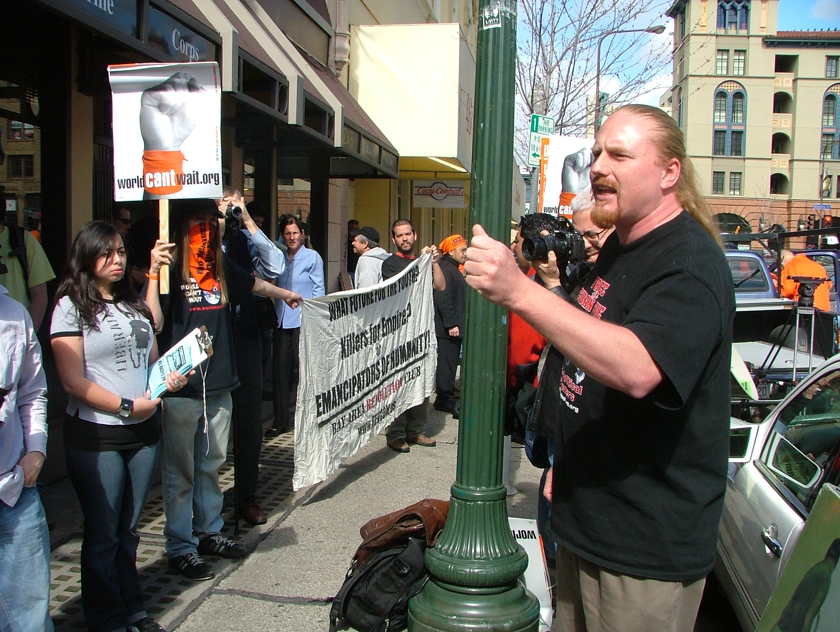 Shut it down- another World Cant Wait Friday at the recruiter’s office in the Berkeley Police State.