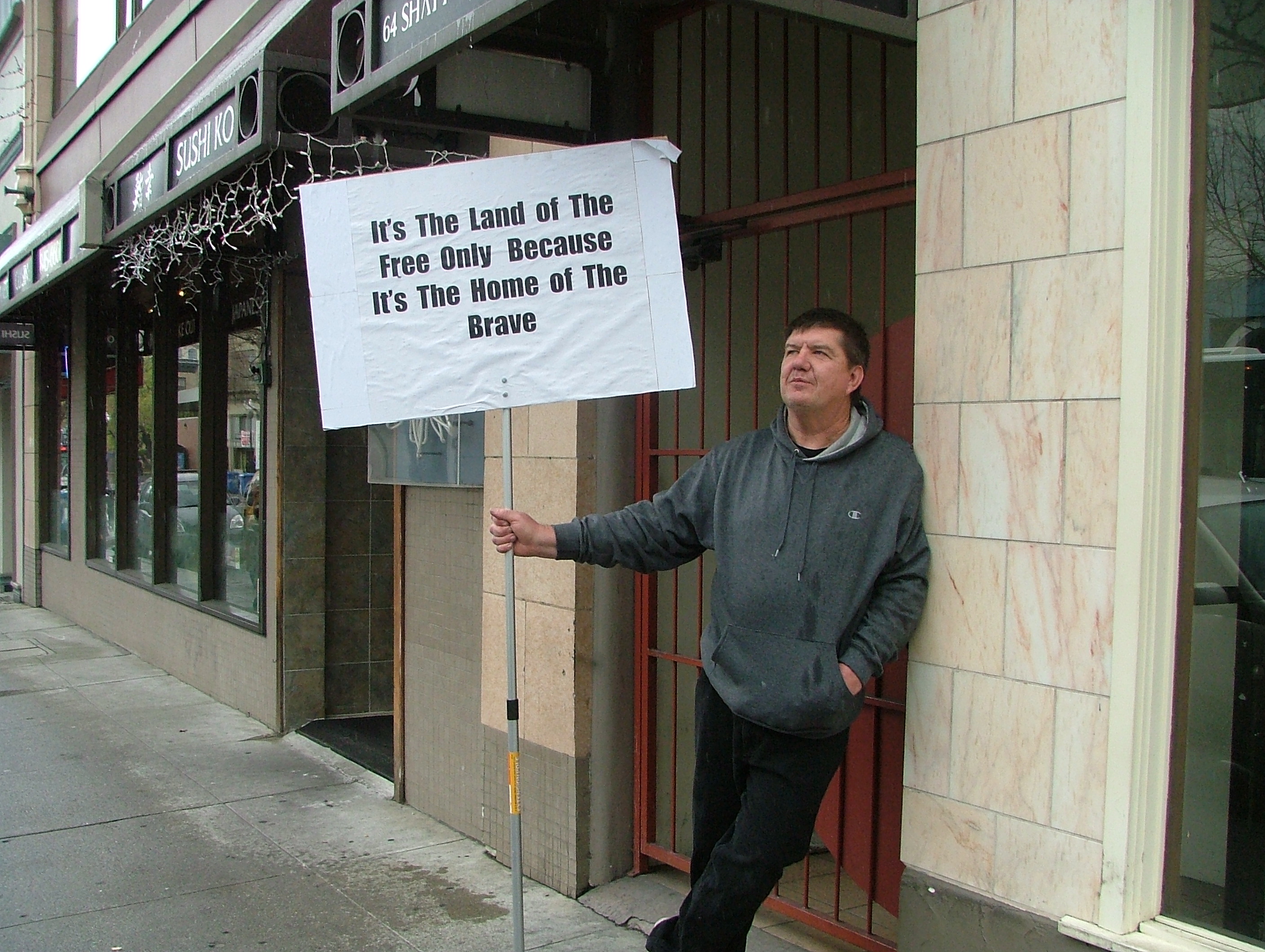 the BPD decided to expand their protection of the state by actually standing in front of the recruiting office and guaranteeing that the recruiters are allowed to deceive and solicit kids for the advancement of the American Empire (referred to by some people as “free speech” http://www.youtube.com/watch?v=mMEWflz-L8I).
