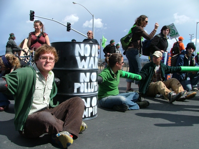 These are shots of the civil disobedience action at the Chevron facility on Sat. This was an expression of opposition to the illegal occupation of Iraq, and the pollution inflicted upon the local community by the 100-year-old Chevron facility. Chevron intends to use dirtier oil at the refinery, which will increase the amount of local pollution and it's cancerous effects. If Big Oil couldn't make money off the war, it wouldn't be happening, hence the logic of blocking the entrance.