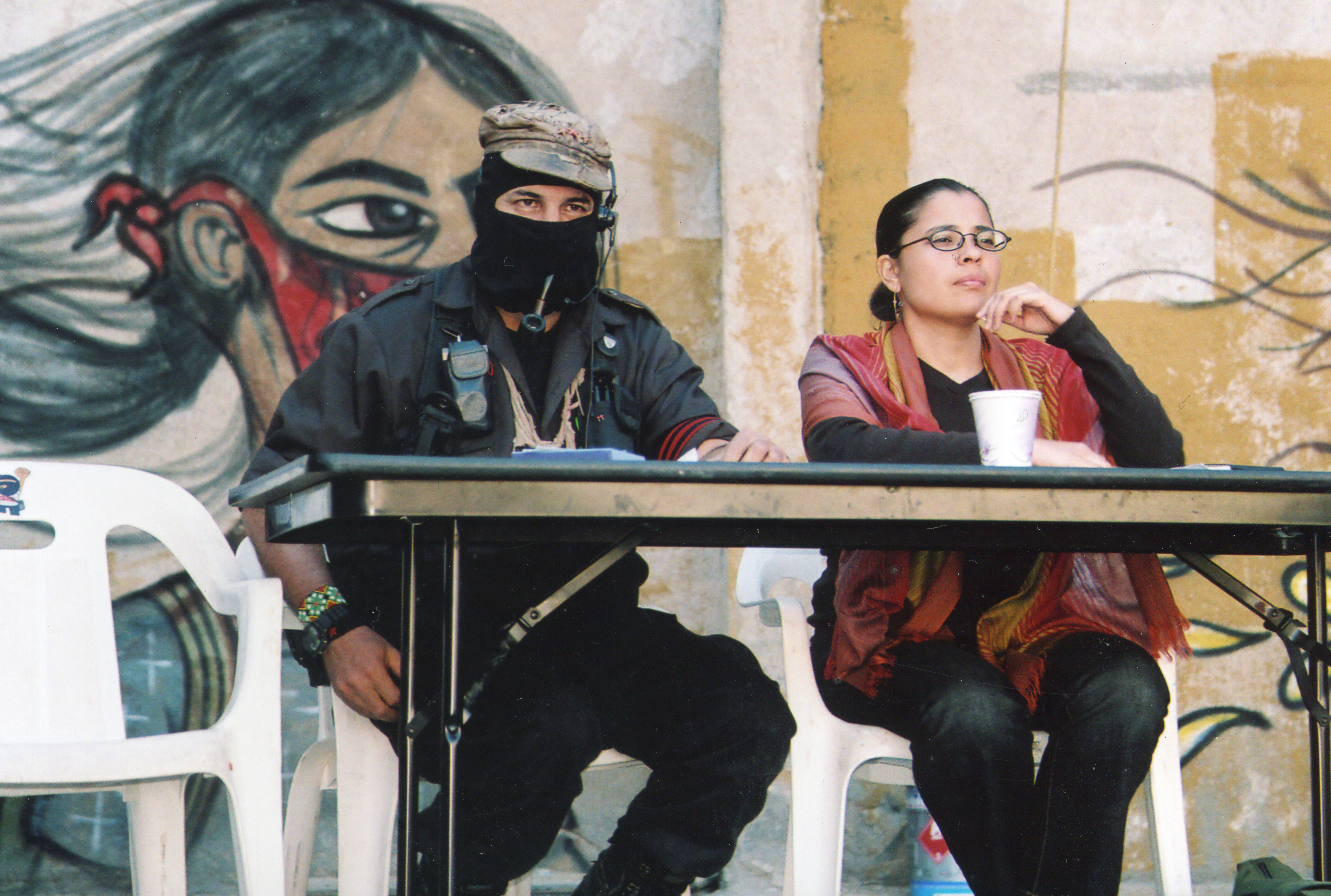 Photo: Subcomandante Marcos and Aura Bogado at the Zapatista Otra Campana meeting in Tijuana in October 2006. Photo by Dan Bacher.