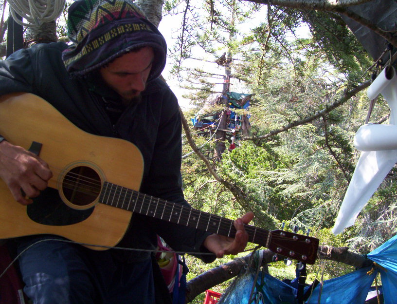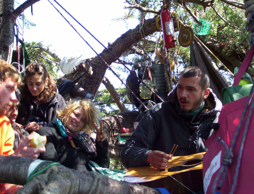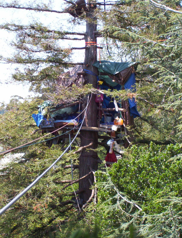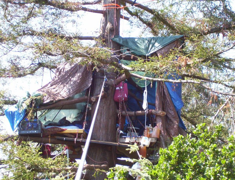 On (this) Sunday, April 27 there will be an orientation about the Oak Grove tree sit in People's Park in Berkeley. The tree sit is very exciting and has been going for more than 500 days - the longest urban tree sit ever. As it is in the city there are opportunities to visit it that one does not get in tree sits in wilderness areas. The police have tried to stop this with several fences and by posting security guards. This does not stop you from being able to visit legally on the sidewalk, or from ignoring the law and climbing into the grove to stay for as long as you want. New tree sitters are greatly encouraged.