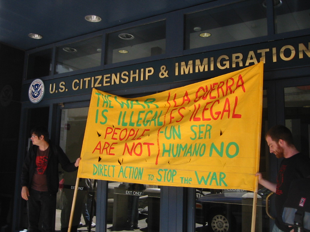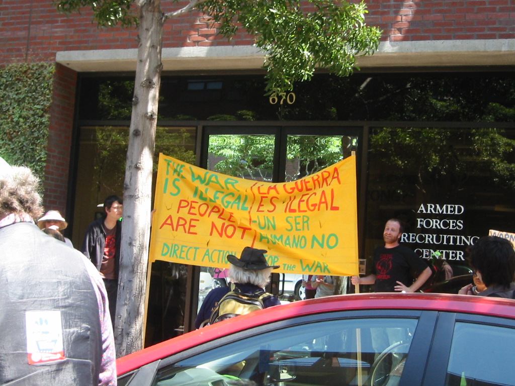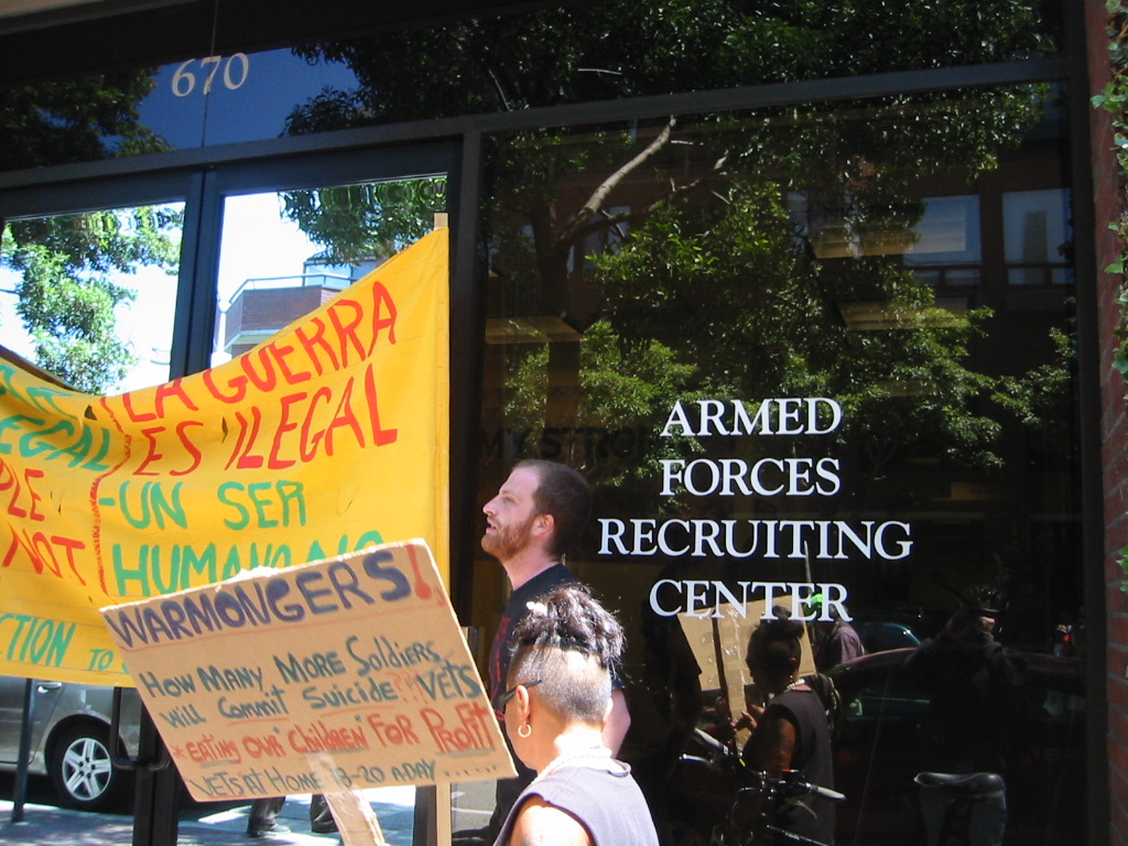 DASW Splits after ILWU march to go to the military recruiting station then ICE to show how the military is exploiting immigrants who are not only very poor, but also are in constant fear of being deported.