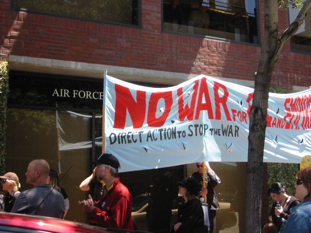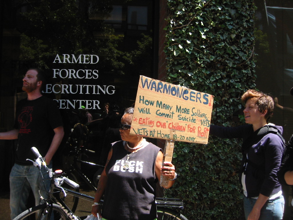 DASW and other groups marched to the front of the military recruiters who first lie to entice young people to join, and then gives offers which are not always carried out. Some of the people speaking included somebody describing what solders get starting with the recruitment to the end of service. Then there were high school students that testified about what goes on with teens regarding the military and war.