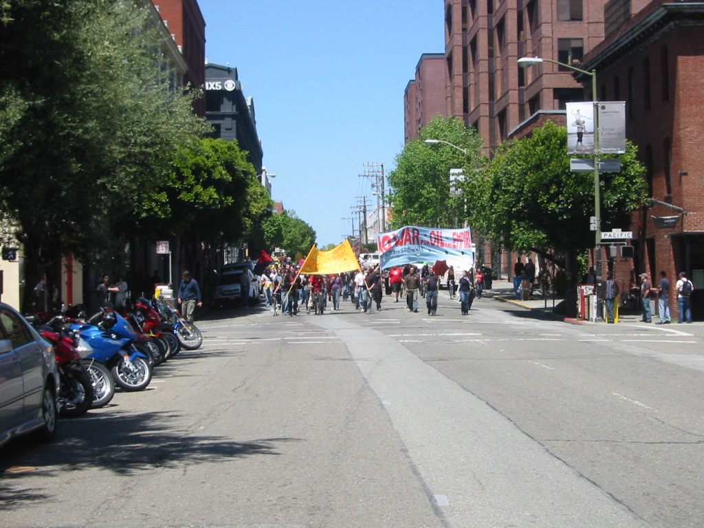 DASW and company then marched down Samsome St. until Market were people went on their own to the Immigrant Rally in Delores Park.