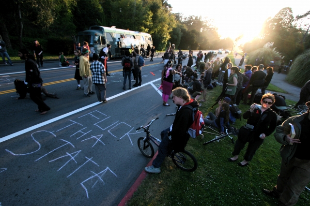 There was a reclaim the streets action. A little over 100 people participated in total. The mobile party started in Civic Center and went all the way to Golden Gate Park.