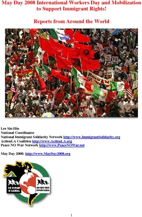 40-pages report: May Day 2008 International Workers Day and Mobilization to Support Immigrant Rights! Reports from Around the World