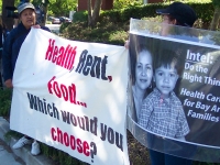 On May 17th, Bay Area janitors voted to strike against the cleaning contractors that work with companies such as HewlettPackard, Cisco Systems, Oracle, Yahoo, Applied Materials, and Intel. On May 21st, over four hundred janitors walked out of a dozen locations in the South Bay. On the second day of the strike, many more janitors walked off their jobs including workers at Standford University . Teamsters have indicated that will not cross picket lines established by striking SEIU janitors. The action could mean that UPS drivers will not be able to deliver packages, city garbage could go uncollected, and construction could be interrupted. On May 21st, striking janitors staged a morning protest at the Annual Shareholders' Meeting for Intel corporation in Mountain View. SEIU members gave out leaflets to those who invest in Intel. Several janitors and their supporters went into the meetings, where they demanded better pay and benefits from one of the Bay Area's high tech giants.