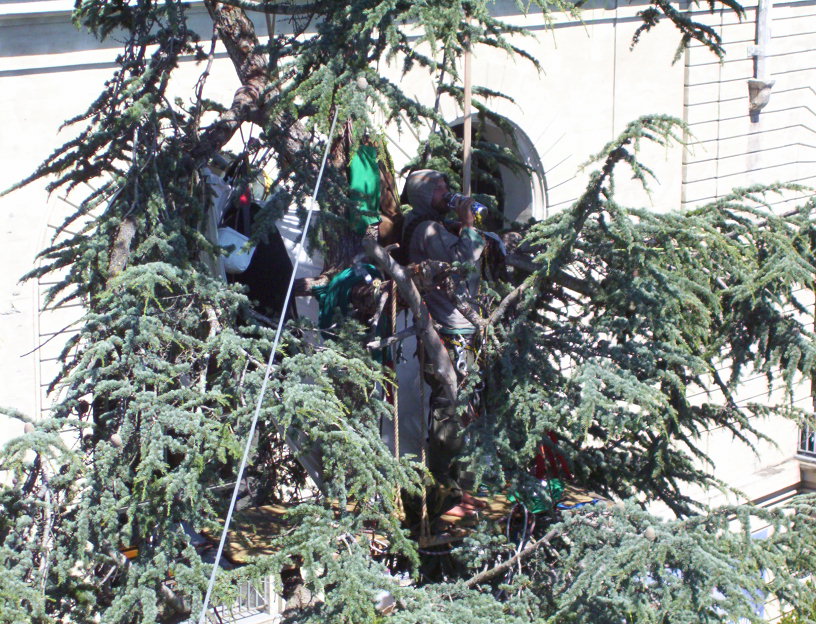 Photos I took of the attack on the Oak Grove tree sits in June 17