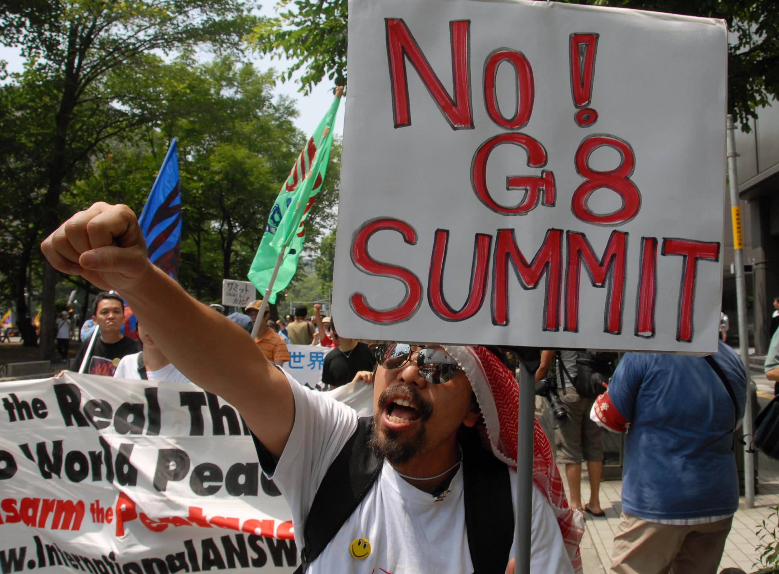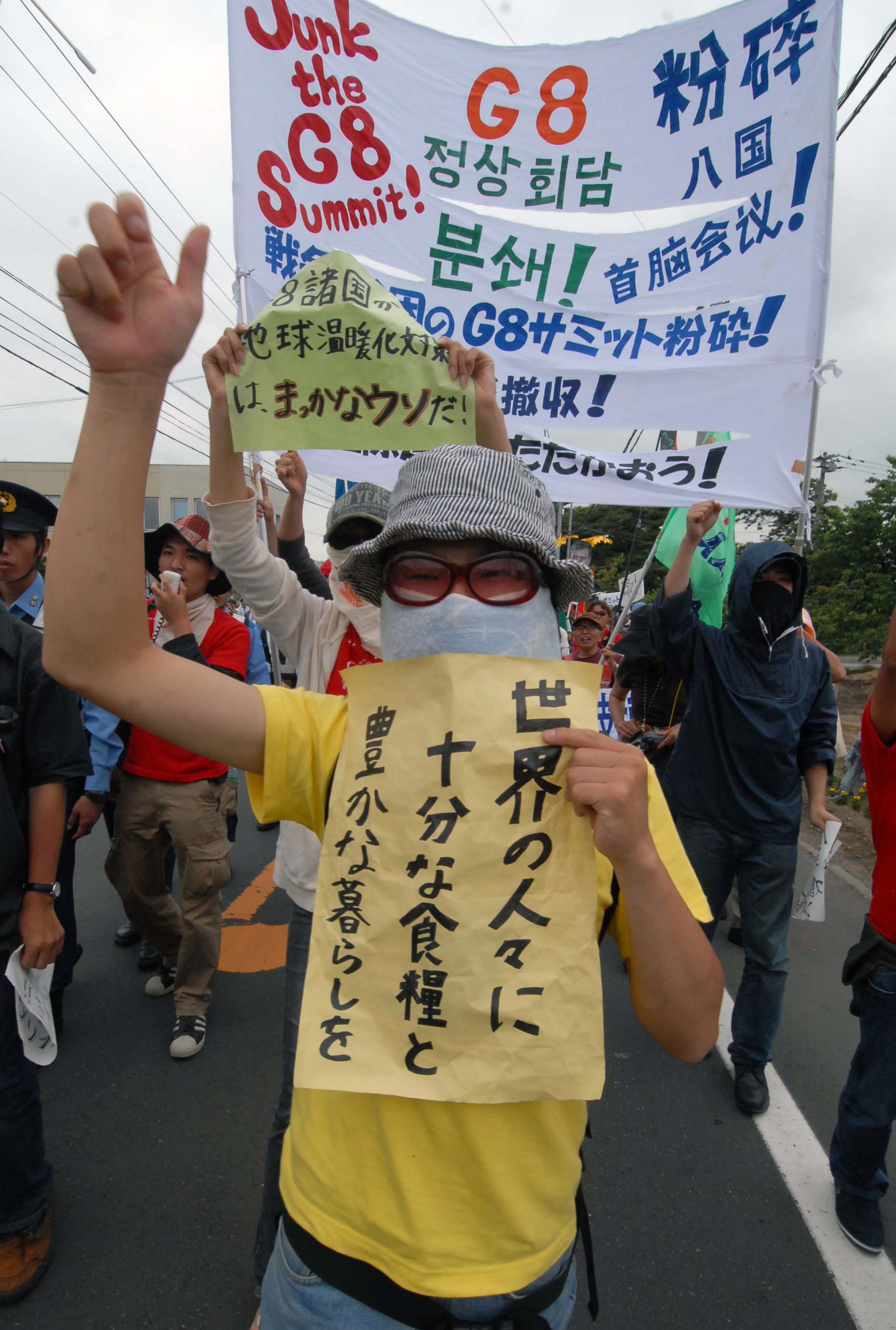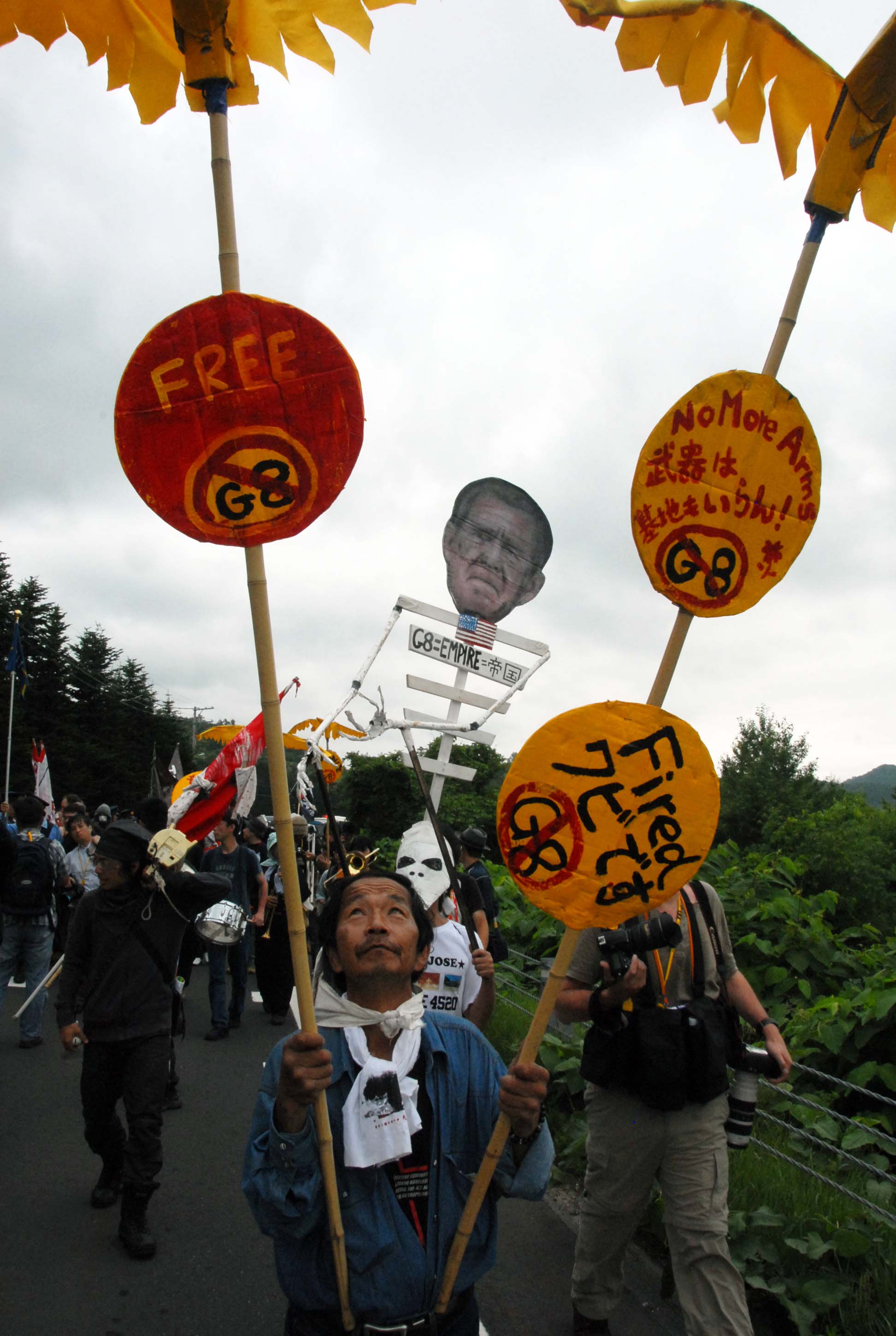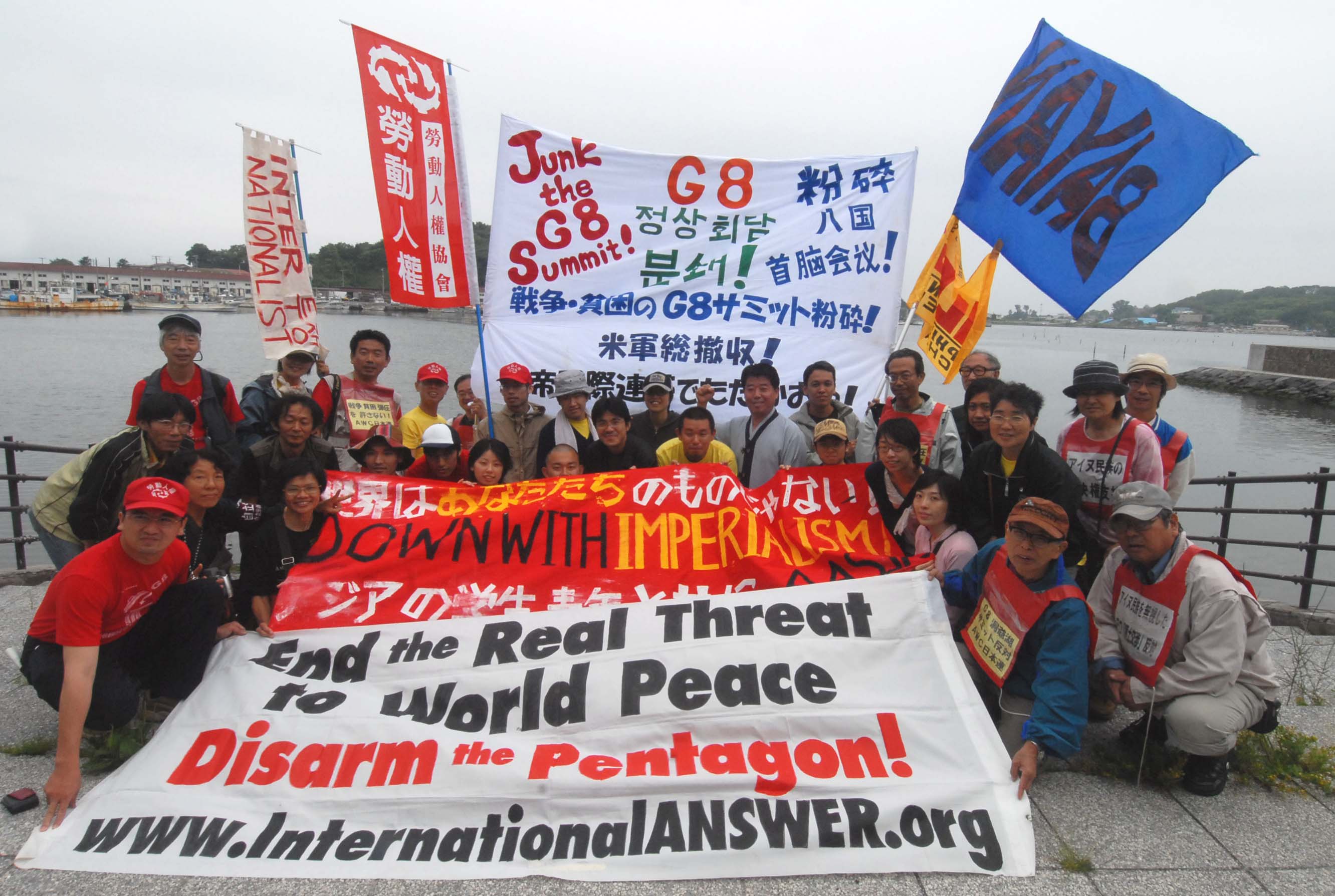 On July 7-9 the G-8 countries held their annual meeting high above Lake Toyoaka in Hokkaido Japan at an exclusive spa resort. This is part of the usual pattern of the annual G-8 meetings to hold them in the most remote areas possible. Hokkaido, a land of beautiful lakes and volcanos is the most rural and least populated of the four major islands that make up Japan. The Japanese government in its rush to ingratiate itself to the bigger imperialist powers spent $250 million in security measures and deployed 22,000 national police to Hokkaido and another 20,000 were on reserve in Tokyo. If these meetings had been held in Tokyo the demonstrations would have been massive and militant.