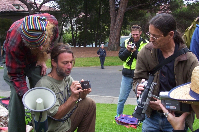 I as a Native American leader/elder and current mayoral candidate for the City of Berkeley (endorsed by Cindy Sheehan). I was witness to this pathetic incident where six people were arrested for planting a Oak tree sapling from the grove in memory of Councilwoman Donna Spring. The six charged with vandalism while the University of California at Berkeley(UCB) makes and designs all the Nuclear bombs in Western hemisphere. In final desperate move they gathered ten officers to push and intimidate vigilant supporters off the grounds (UCB) to eventually have a female officer yank the sapling out of it's new home. We communicated with Bobby B. (Chancellor Robert Birgenau who claims Mohawk ancestry) that the Mohawk Warrior Society supports the Oak Grove and the RunningWolf campaign but also new life as the sapling in the Late Donna Spring honor.