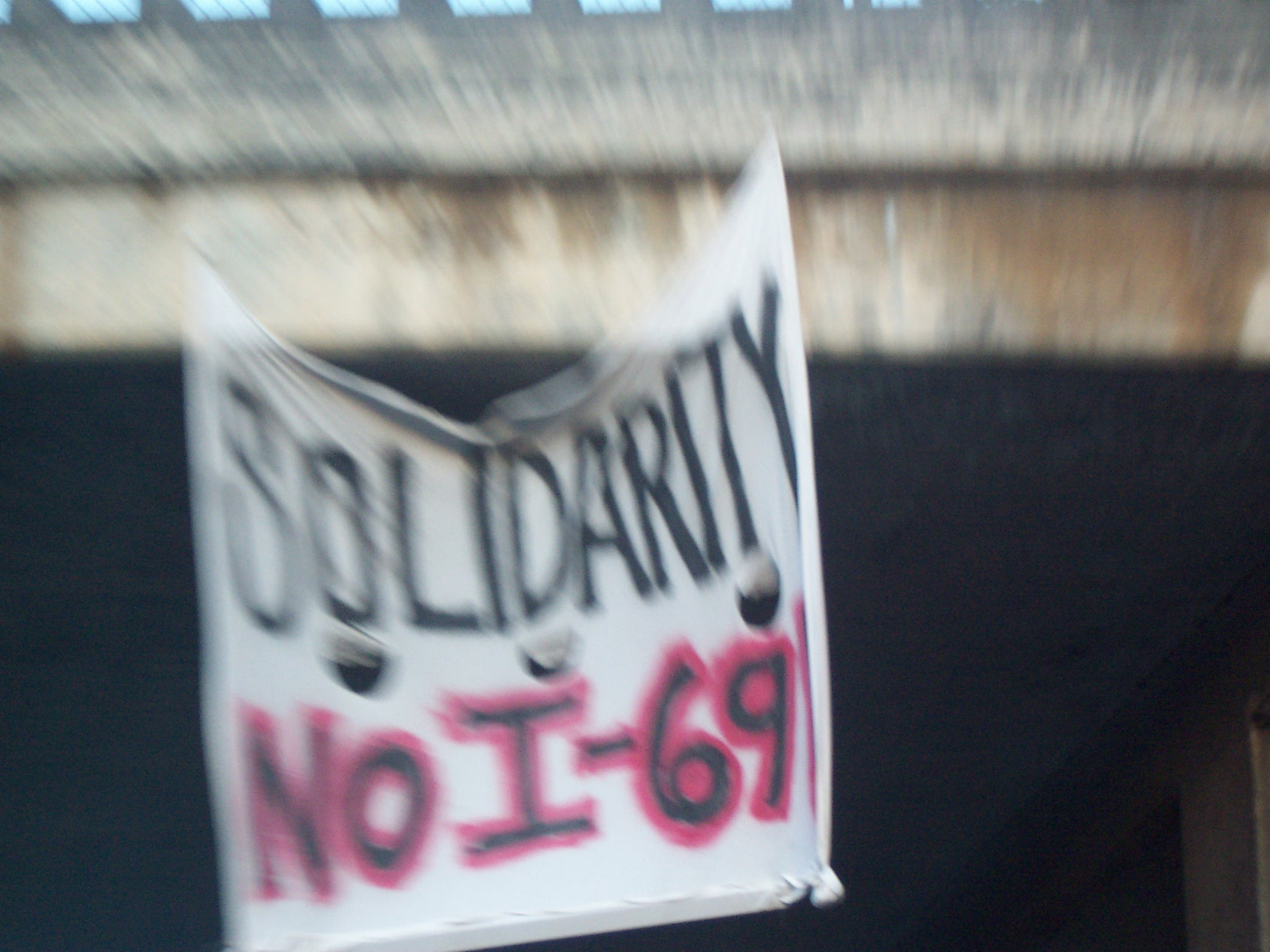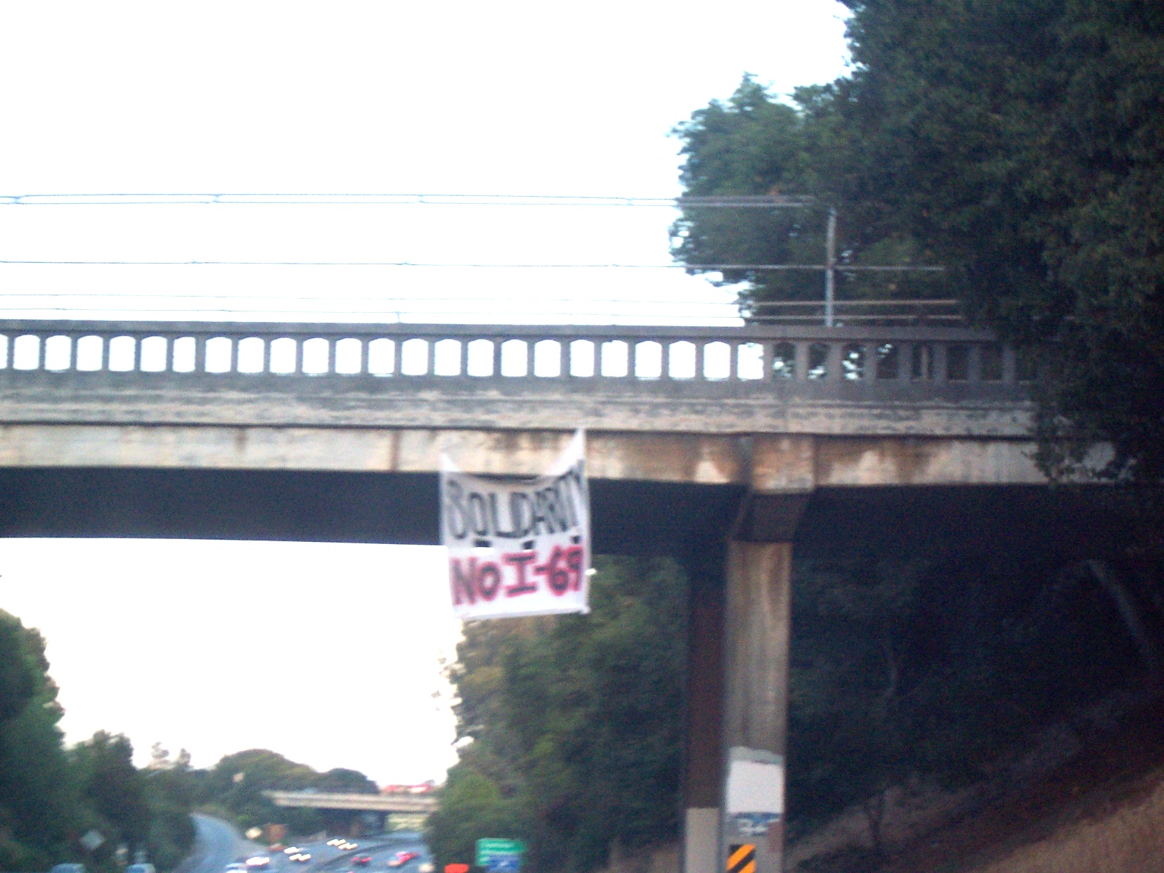 In response to the call out for a national day of mobilization against the construction of I-69, we in Santa Cruz exhibit our solidarity with those in Indiana and throughout the country who are directly resisting this destructive expansion. Let our humble banner fly as a sentiment of our appreciation and love for all creatures alive enough to face the machines of industry that would bury us under their concrete.