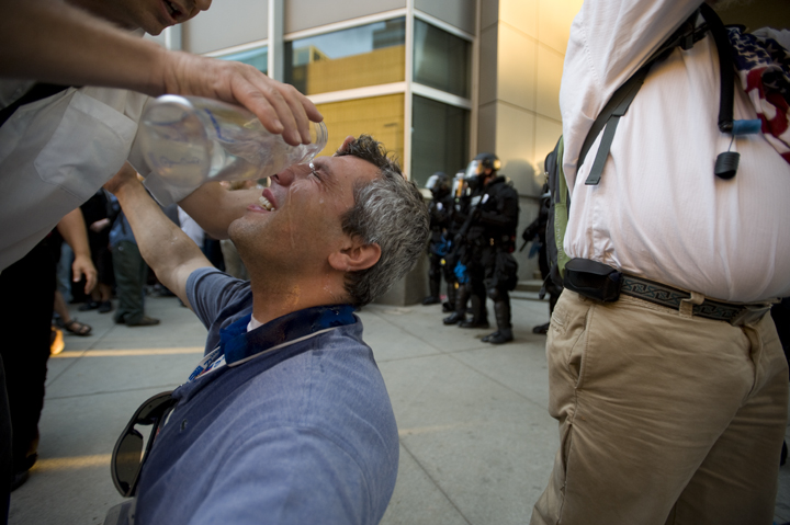 Police used pepper spray on peaceful protesters in order to, as the corporate Rocky Mountain News wrote on Tuesday, "gain the cooperation of protesters."