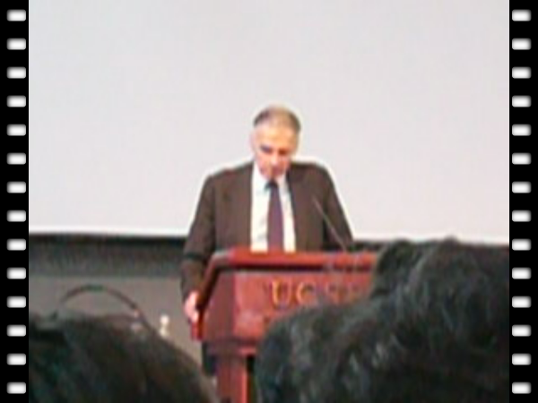 Below are a list of clips of Gonzalez and Nader speaking. There was a man with a 'fail' sign in the audience, but he was a liberal mumbling about how this isn't the right way to go. Nader said that many voters from McCain switch support to him. A heckler who was listening to an earpiece went on about socialism and christianity at length. He was saying that Nader's positions are all 'based on emotion', while he is rational, which is rather absurd. At one point, Ralph got a glazed expression during a question and said Obama, when he was responding about Osama bin Laden, but he was fast enough on the uptake to quickly make up a joke about it.