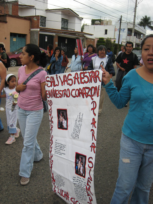 On Tuesday, September 30, which would have been Sali's 21st birthday, Sali's friends and comrades held a march in her honor and memory in Oaxaca, Mexico. About 200 people attended and marched from the Seven Regions Fountain to the Cathedral in the zocalo. The major themes were justice for Sali and an end to violence against women.