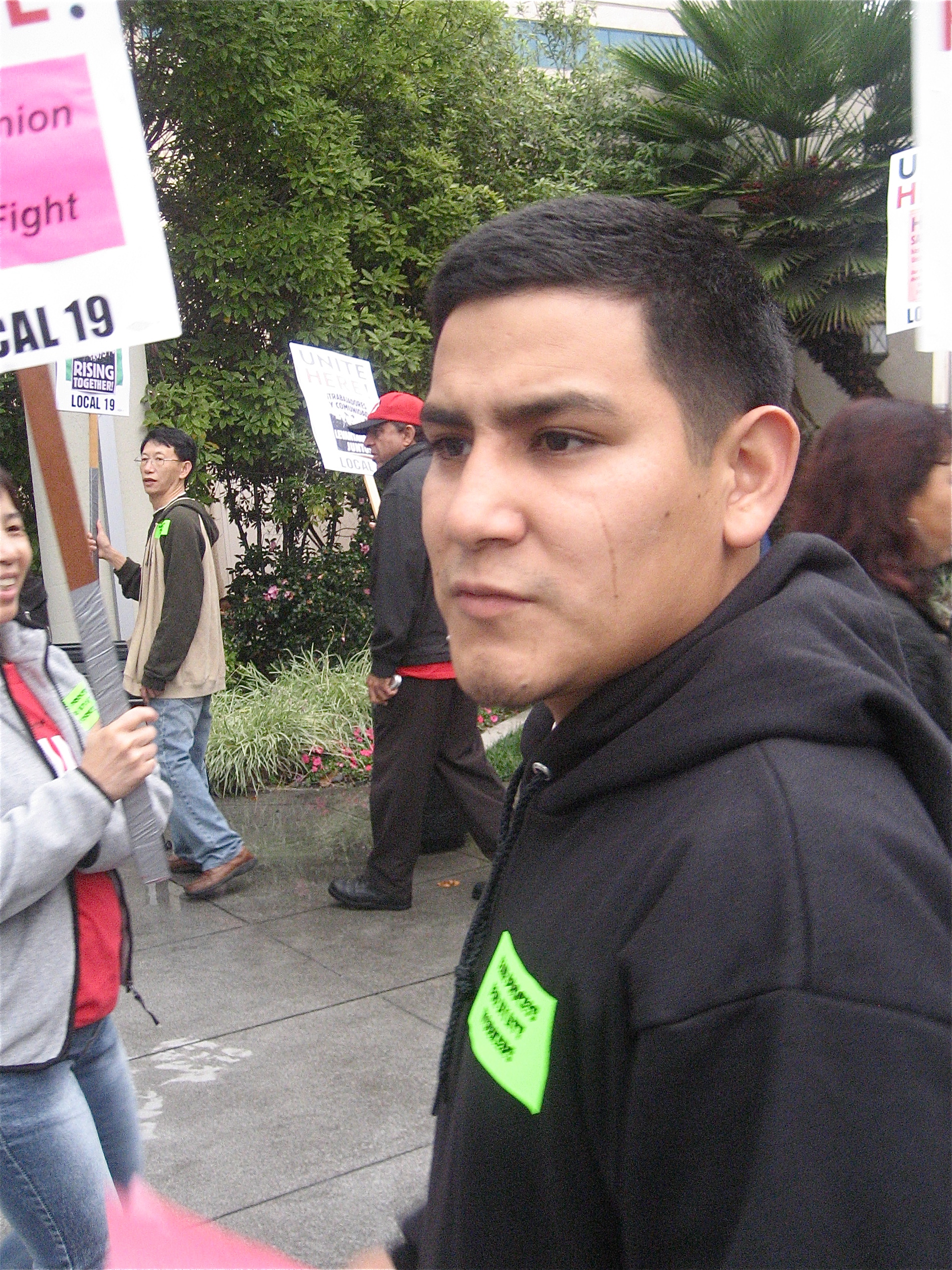 Supporters joined Hyatt employees marching in front of the hotel in Santa Clara, California on October 30.