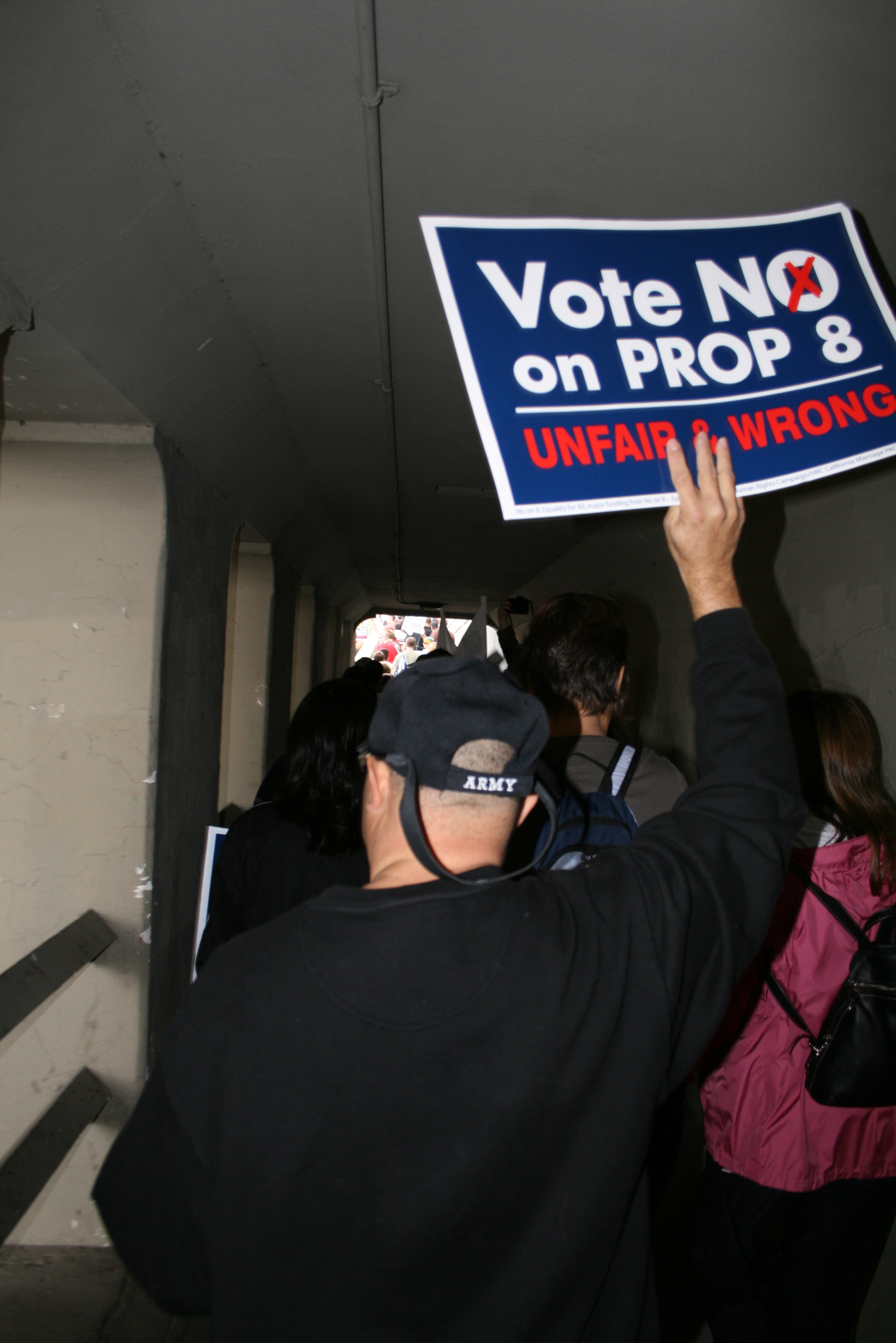 Despite many people's anger, there was an air of peaceful resolve among the group, many of whom have seen similar discriminatory legislation passed in California's fight for equal rights. Many recalled the 61% majority by which 2000's Proposition 22 passed, compared to the much lower 52% of prop 8, noting that progress is indeed being made.
