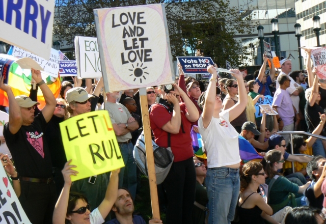 Across the country and around the world, rallies took place on November 15th to protest the passage of Prop 8 and demand equal rights for all people. The largest rally in the Bay Area was in San Francisco, but many people also gathered in Oakland. The crowd grew throughout the morning as hundreds gathered to listen to speakers and demand the repeal of Prop 8.