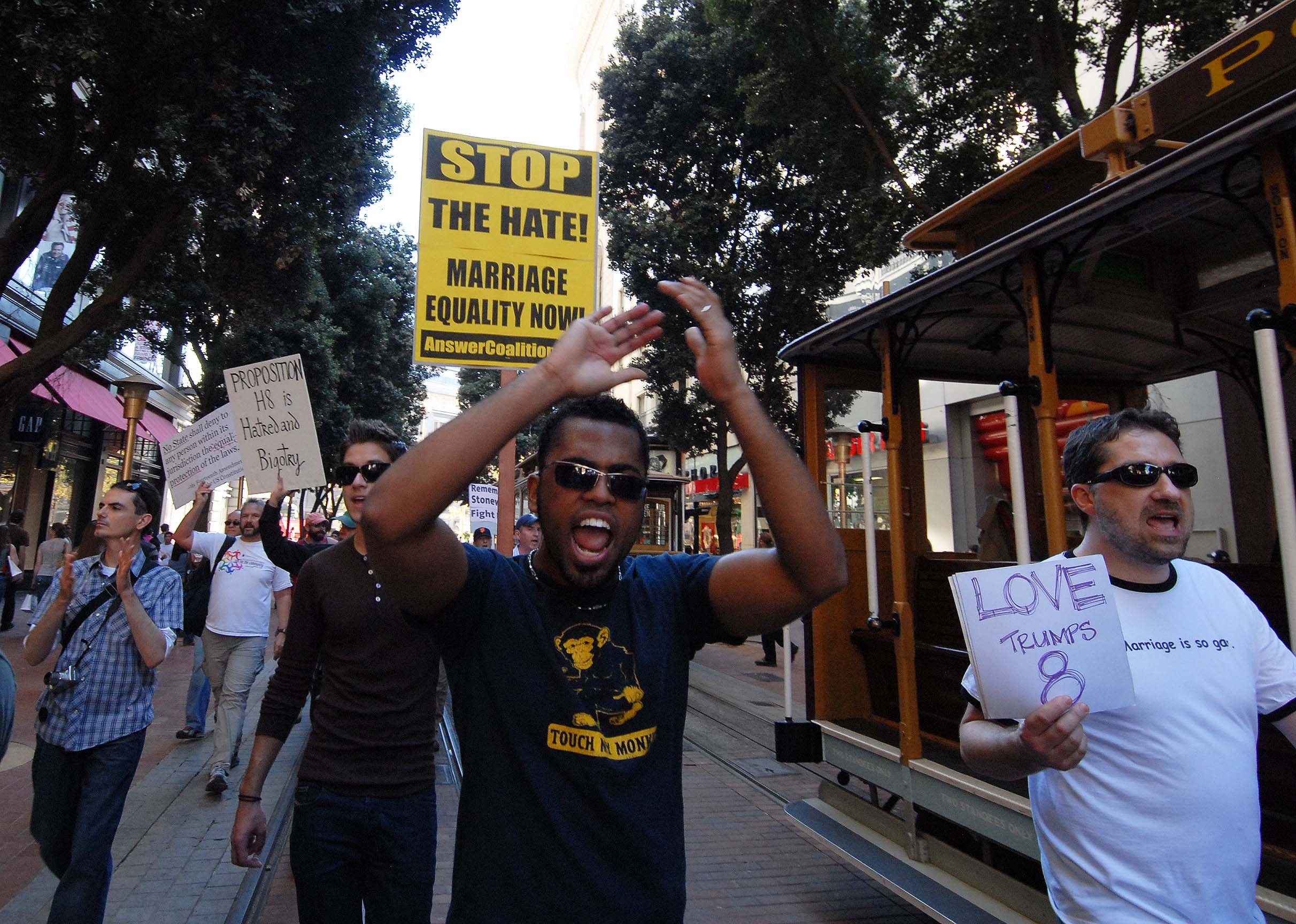 15,000 protest in San Francisco against the passage of Prop 8 denying same sex marriage