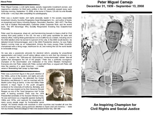 Peter Camejo Memorial: Sunday, November 23,