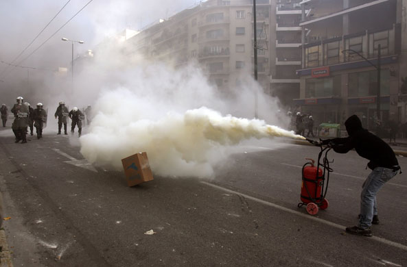 On Tuesday morning, thousands of highschool students were on the streets again. In many cities they classed with the police and there were arrests. During the past 2 days in EVERY greek city, even the smaller ones there were demonstrations and attacks on police stations and banks by students and others.