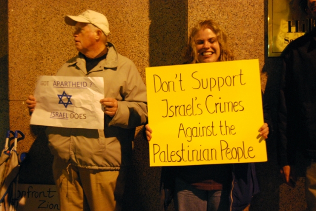 On Tuesday, December 9th, Anti-apartheid and human-right activists gathered to protest an AIPAC benefit at the Hilton Hotel in San-Francisco.