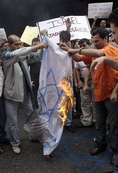 A sit-in that took place in Abu Dhabi yesterday invited international sanctions against the Israelis. The Arab League, scheduled to meet again Wednesday, said the United Nations Security Council position was not enough. Jordanian parliamentarians who burned an Israeli flag during an emergency session in Amman on Sunday issued a demand that the Israeli ambassador be removed.