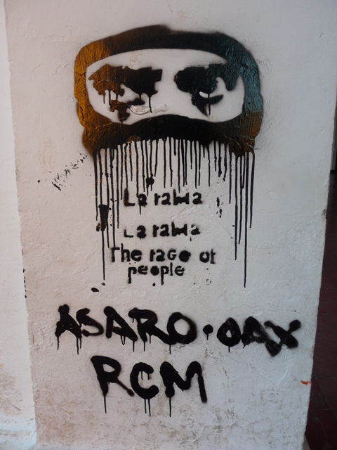 During the Zapatista's (EZLN) Festival Mundial de la Digna Rabia in San Cristobal de las Casas, Chiapas, Mexico, participants staged a two hour march from La Universidad de la Tierra to the zocalo of San Cristobal. The march was in solidarity with Oaxacans who were arrested and jailed while participating in a Palestine solidarity action and also in solidarity with the Palestinian people who are currently under siege by the Israeli army. The pictures are of grafitti and stencils left on the walls of government buildings and stages at the conclusion of the march.