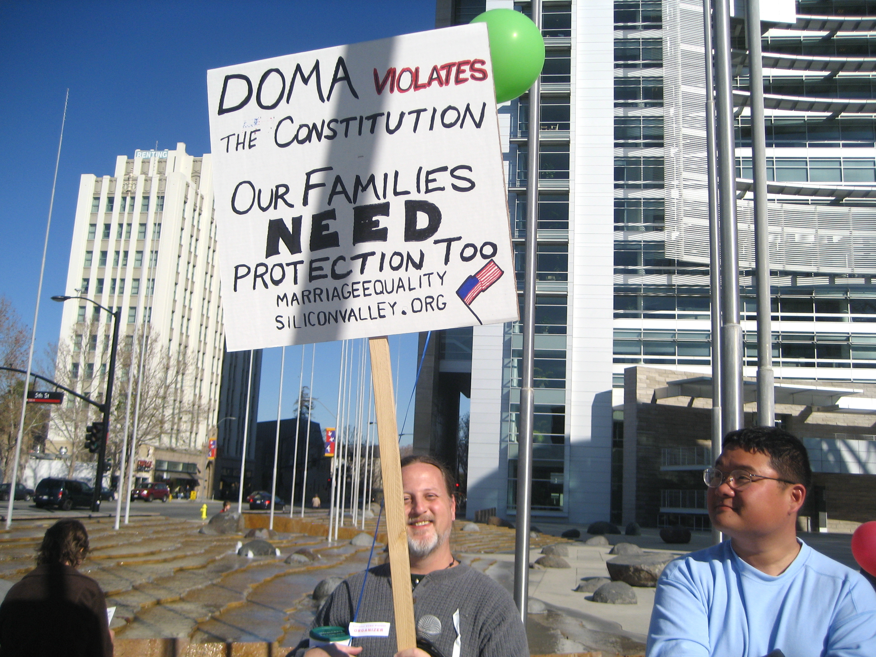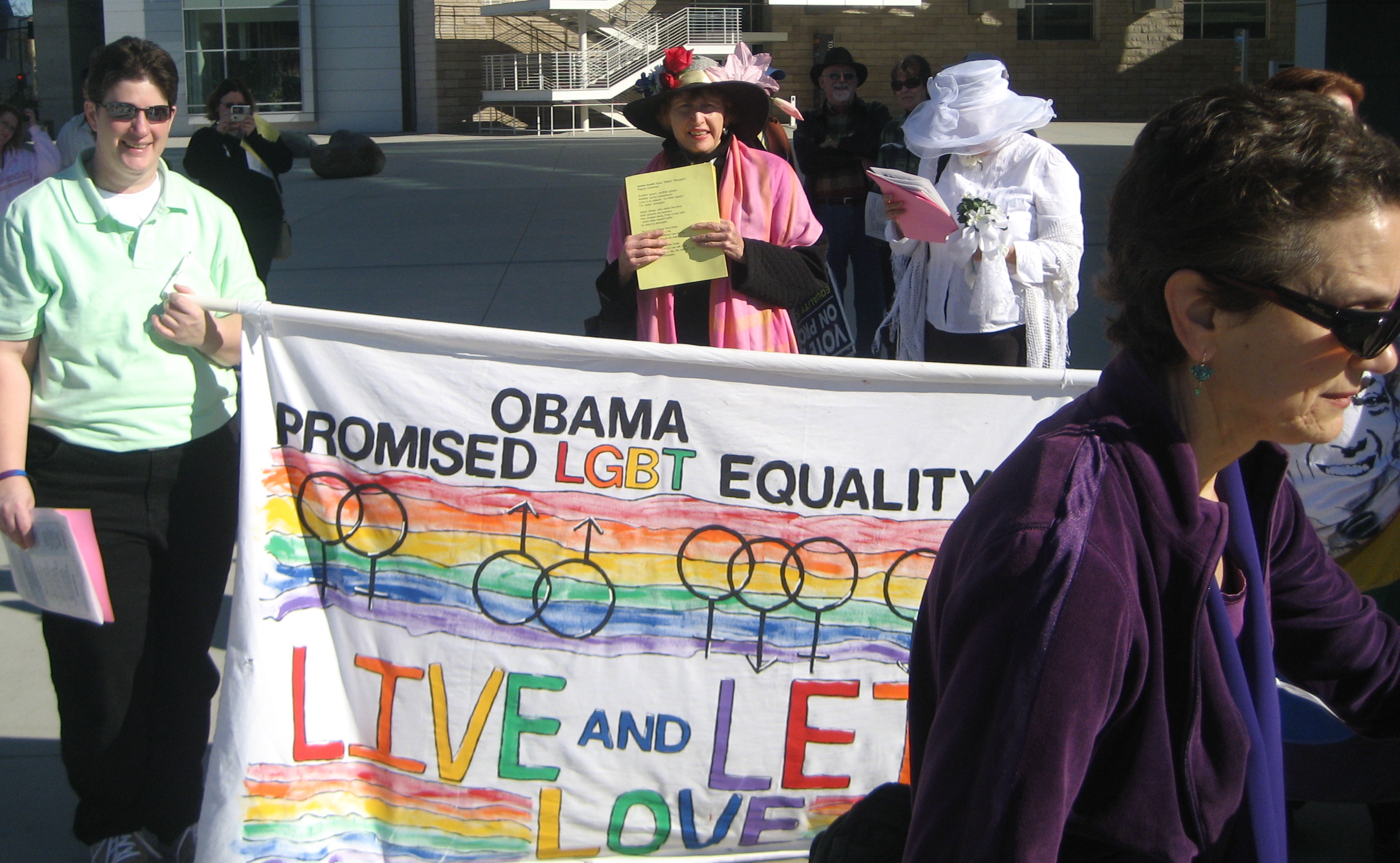 First in a series of postings about the city of San Jose's participation in a National Day of Action for LBGTQI equality. Nationally the theme was reminding Obama of his campaign promises to our community. Locally we added additional emphasis on the elimination of hate crimes against LGBTQI persons, making our rally a fundraiser for the recent victim of a brutal hate crime in Richmond, CA, and calling on Obama to enact the Matthew Shephard Act.