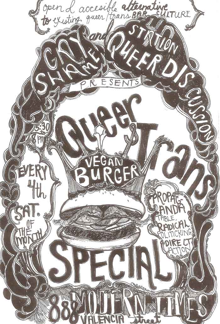 From the minds that bring you Gay Shame and the Queer Discussion Night at Station 40 comes the Burger Queen Social—a fun and exciting opportunity to meet other radical queer, trans, and genderqueer folks to hook up for political witchery and discussion. With free vegan jerk burgers!