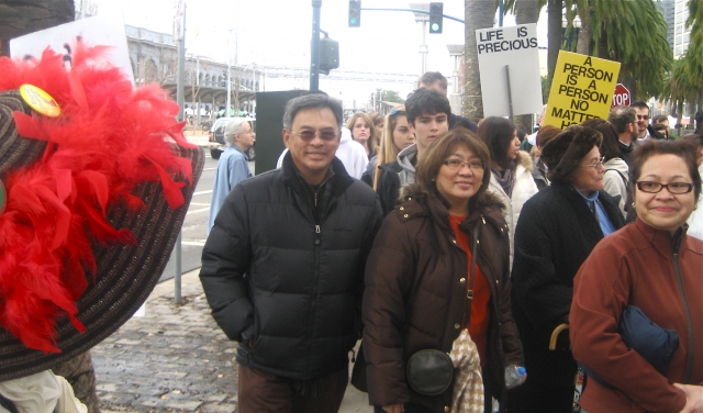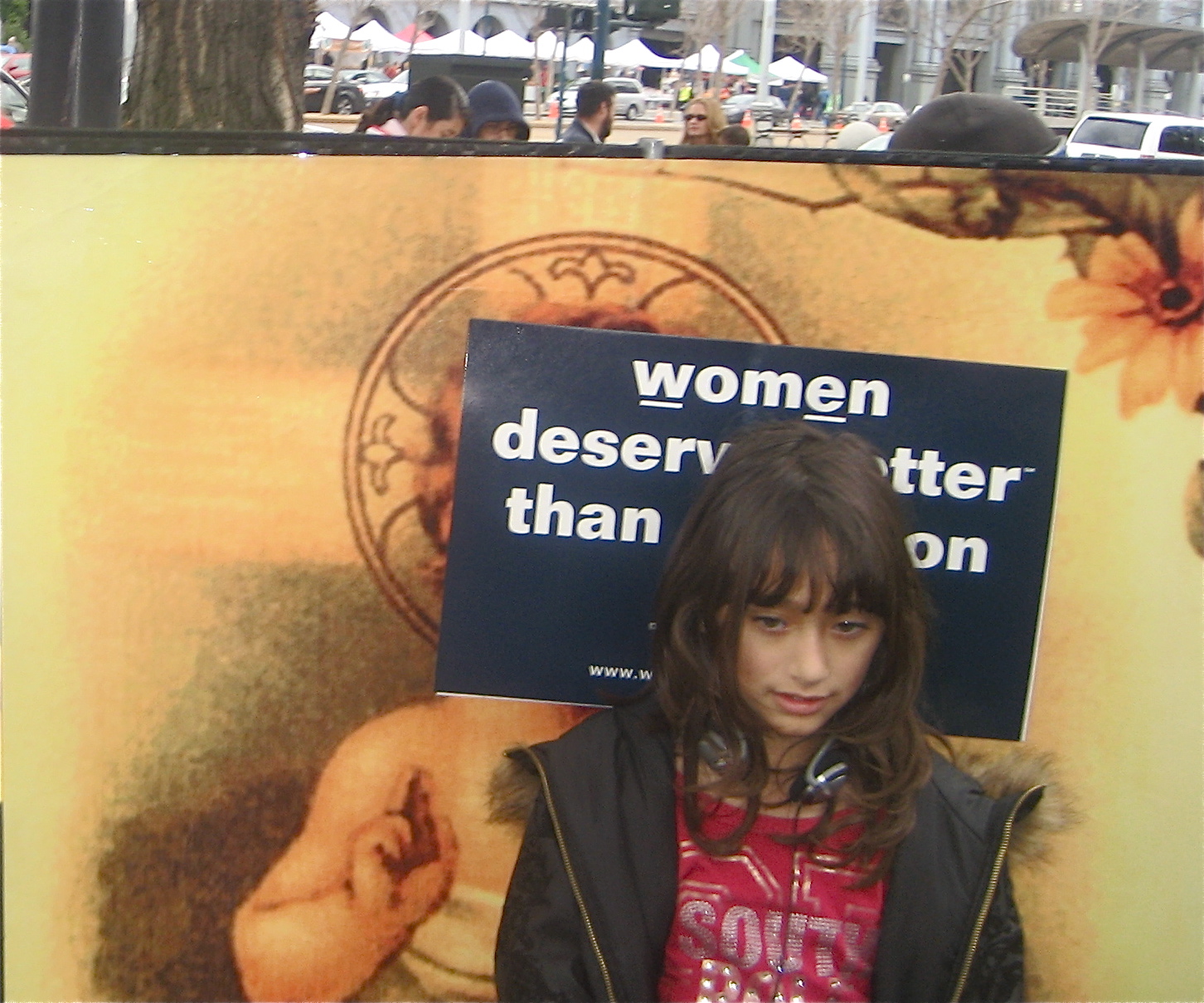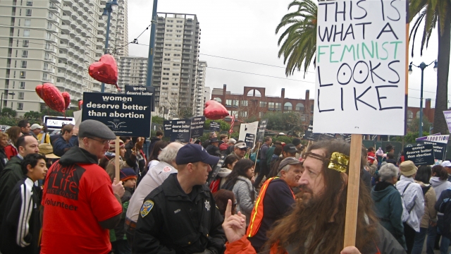 Some pro-choice protesters got up close and personal with the so-called "pro-lifers" to respectfully explain their views, some even listened to the other side, but most chanted or sang, and in a few cases "signaled" their displeasure at having San Francisco occupied by anti-abortion fanatics.
