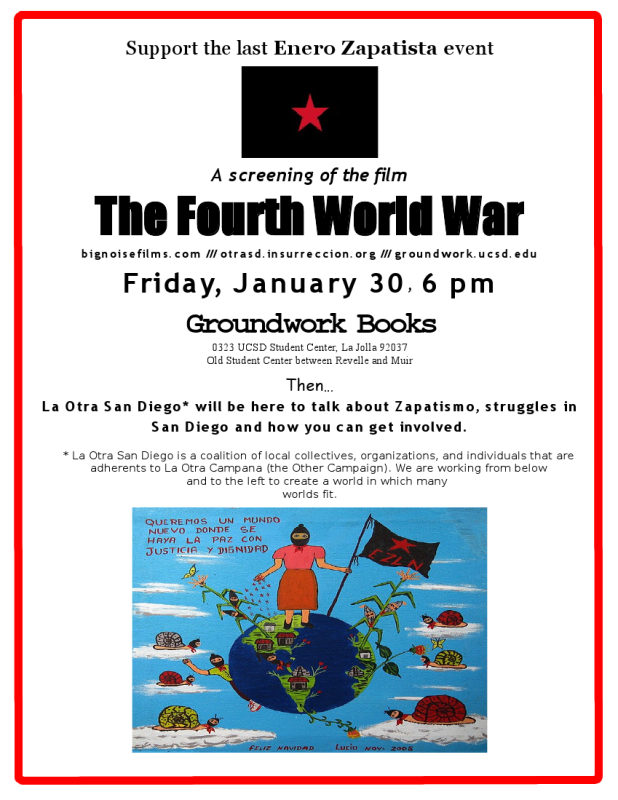 Enero Zapatista screening of Fourth World War at Groundwork Books