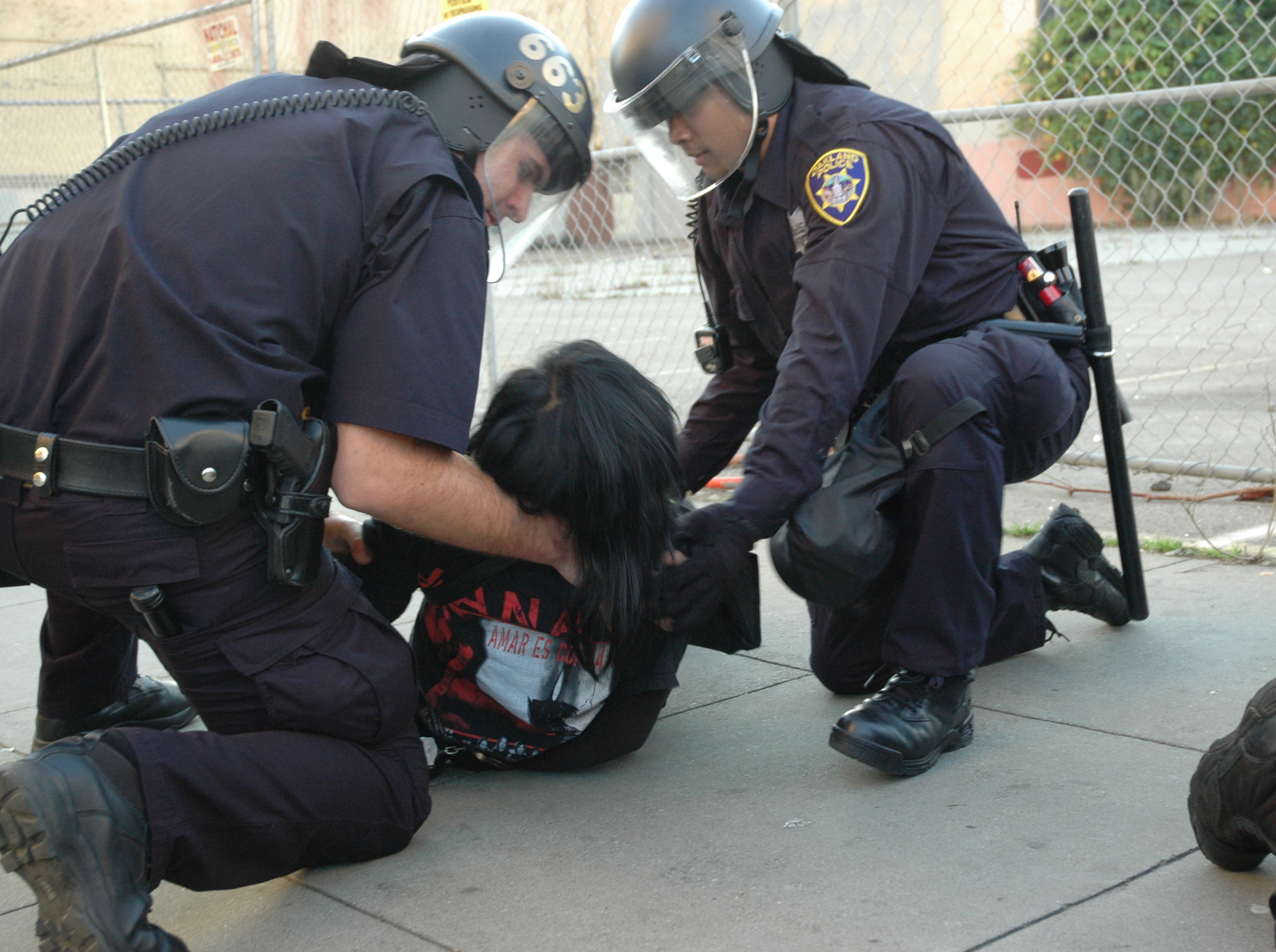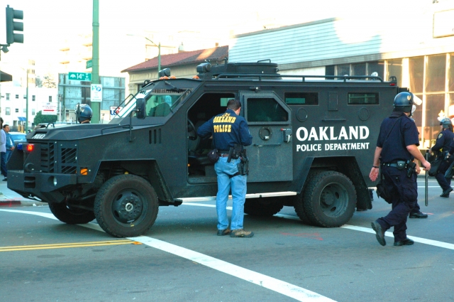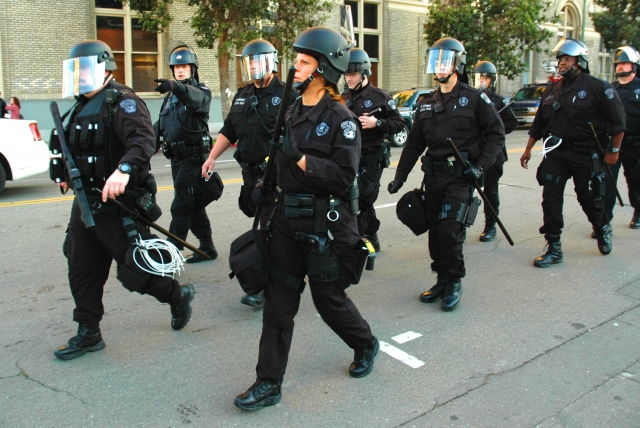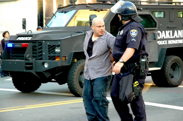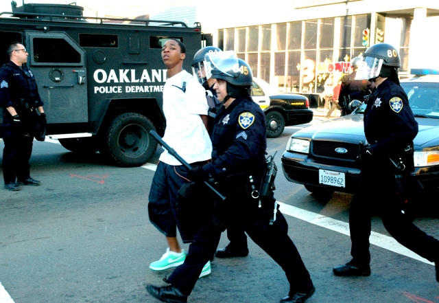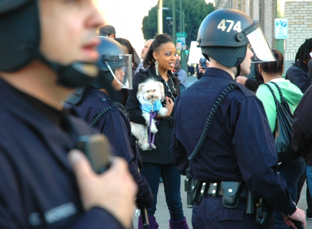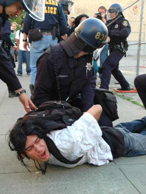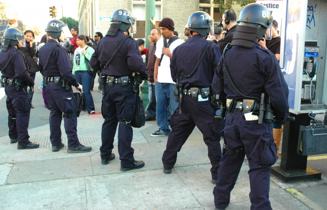 After the BART police officer charged with murdering an unarmed Black youth was granted bail, community members took to the streets to voice their angery. The Oakland Police Department were quite heavy handed tonight, trying to arrest as many people as possible before nightfall. Here are some photos from the scene...